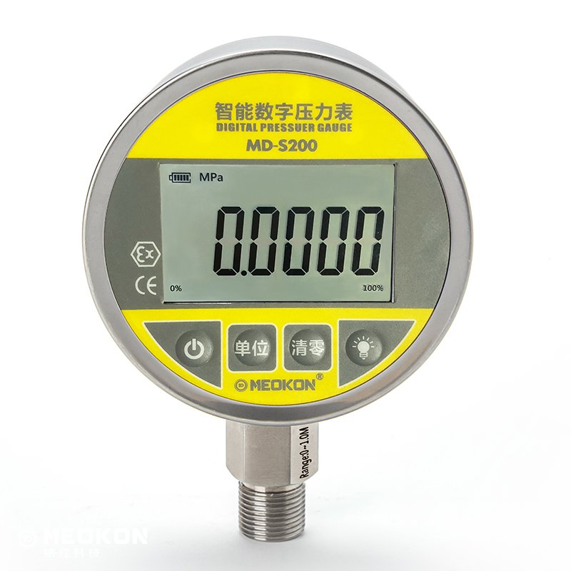 2、避免測(cè)量有沉淀易腐蝕的介質(zhì),以免堵塞。銘控MD-S智能數(shù)顯壓力表能夠測(cè)量氣體、液體、油等對(duì)不銹鋼無腐蝕的介質(zhì)