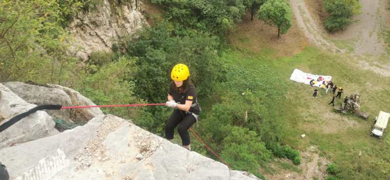在完成愉悅的環(huán)島騎行后,此次團(tuán)建也正式拉開序幕。之后,我們便開始了懸崖速降接力比賽活動。按照教練的安排,我們進(jìn)行了兩隊的計時PK,懸崖速降不僅體現(xiàn)了團(tuán)隊成員之間的協(xié)助能力,也使個人可以更好的突破自我;既有團(tuán)隊協(xié)作,也有競爭比賽。